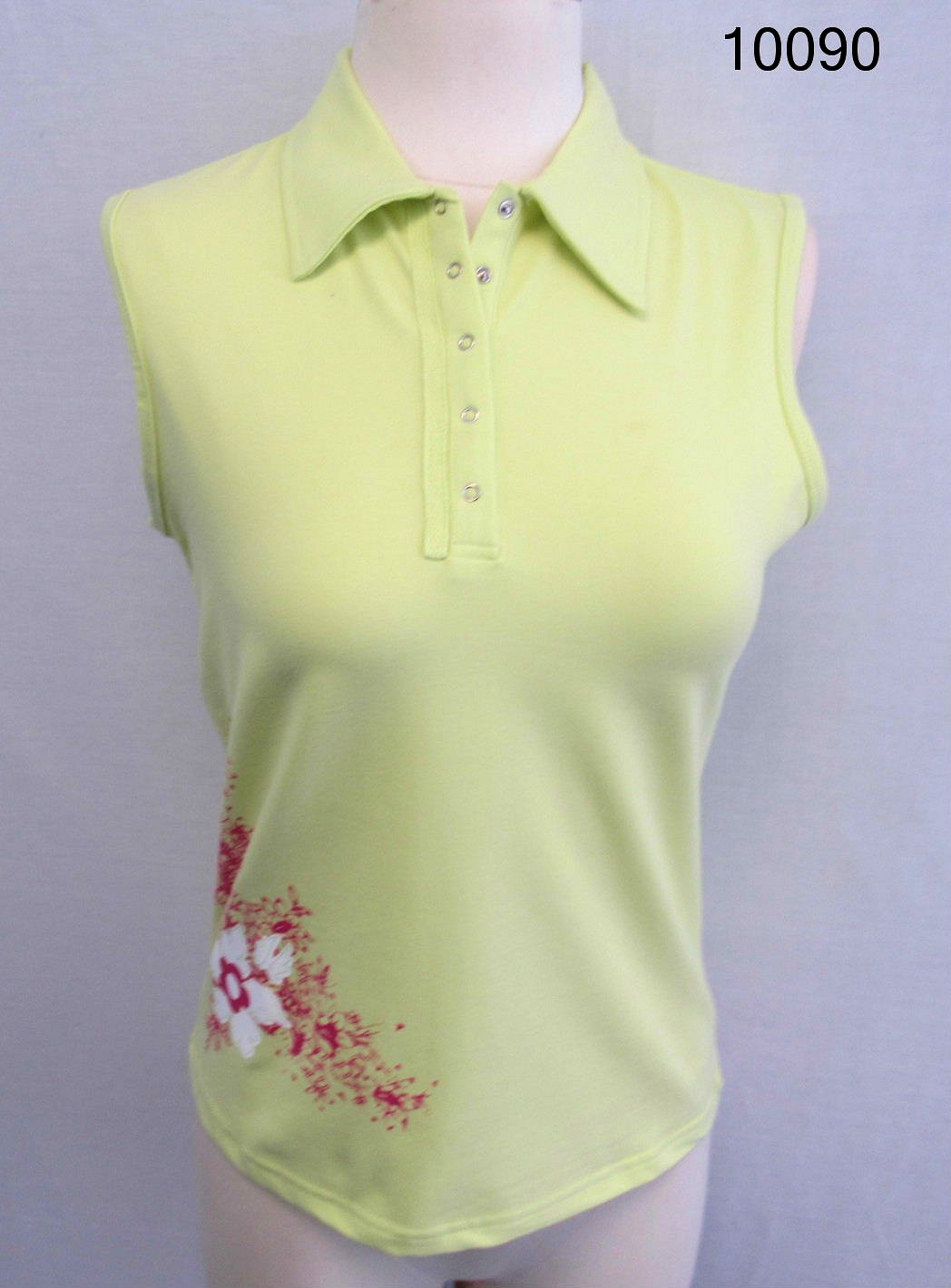 Sleeveless Stretch Knit Polo With Applique Detail by Beta's Choice;