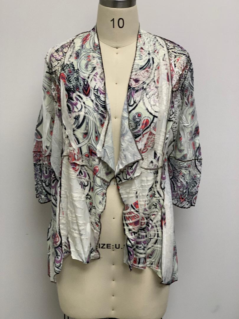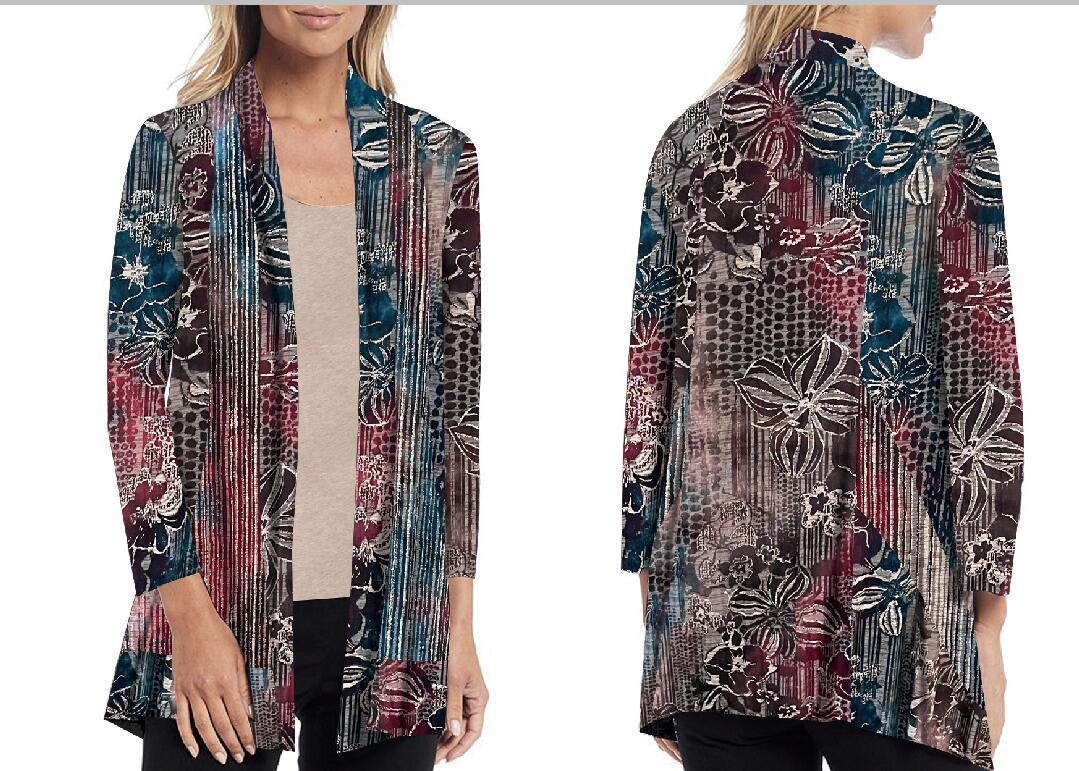 3/4 Sleeve Mixed Fabric Novelty Open Front Cardigan by Kamana; Washable 80% Viscose/20% Polyester In Multi Sizes S-M-L-XL(2-2-2-2)