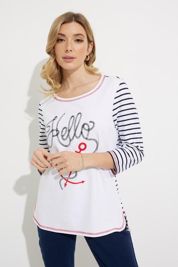 Embroidered 3/4 Sleeve French Terry Novelty Top by Vecceli Italy;