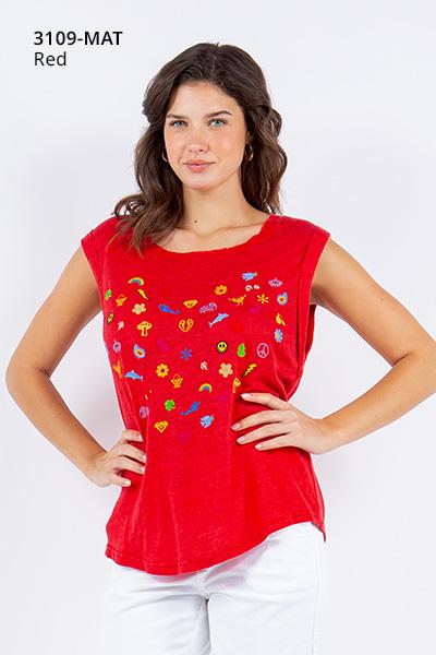 Embroidered Novelty Sleeveless Slub Knit Top by Paparazzi;