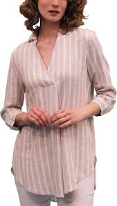 Roll Tab Sleeve Novelty Soft Linen Striped Blouse by Lena Gabrielle;