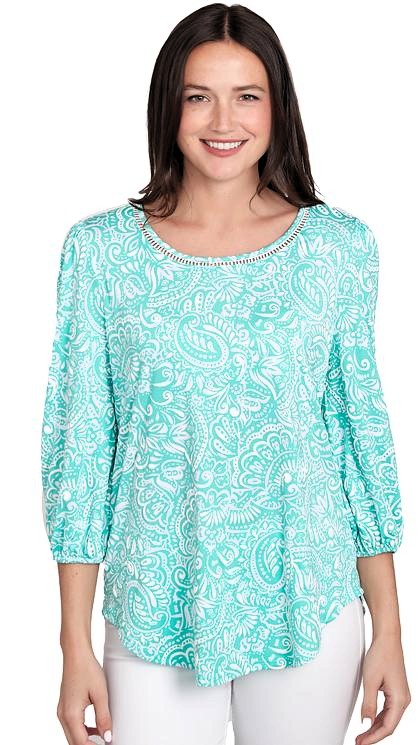 3/4 Sleeve Stretch Knit Print Top With Tipping Detail by Ruby Rd;