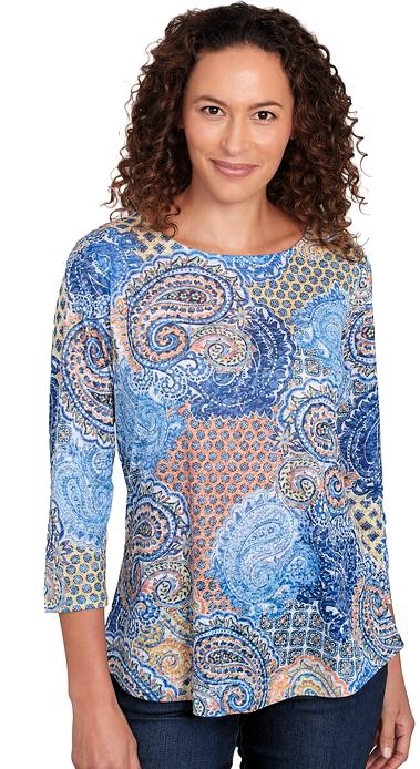 3/4 Sleeve Mixed Pattern Puff Print Top by Ruby Rd;