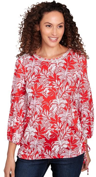 3/4 Sleeve Silky Soft Leaf Print Top by Ruby Rd;