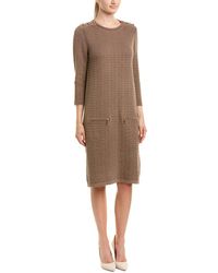 3/4 Sleeve Textured Knit Zip Pocket Dress by Joan Vass; In Pebble