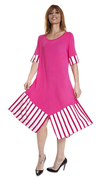 Elbow Sleeve Scoop Neck Novelty Stretch Knit Dress by Vecceli Italy;