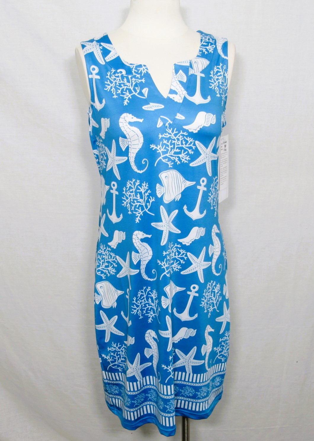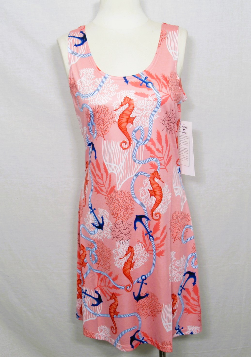 This Tango Mango shift dress comes with a scoop neckline and a fun tropical design.