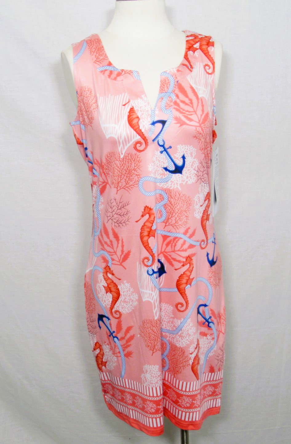 This Tango Mango shift dress comes with a scoop neckline, cap sleeves and a fun tropical design.