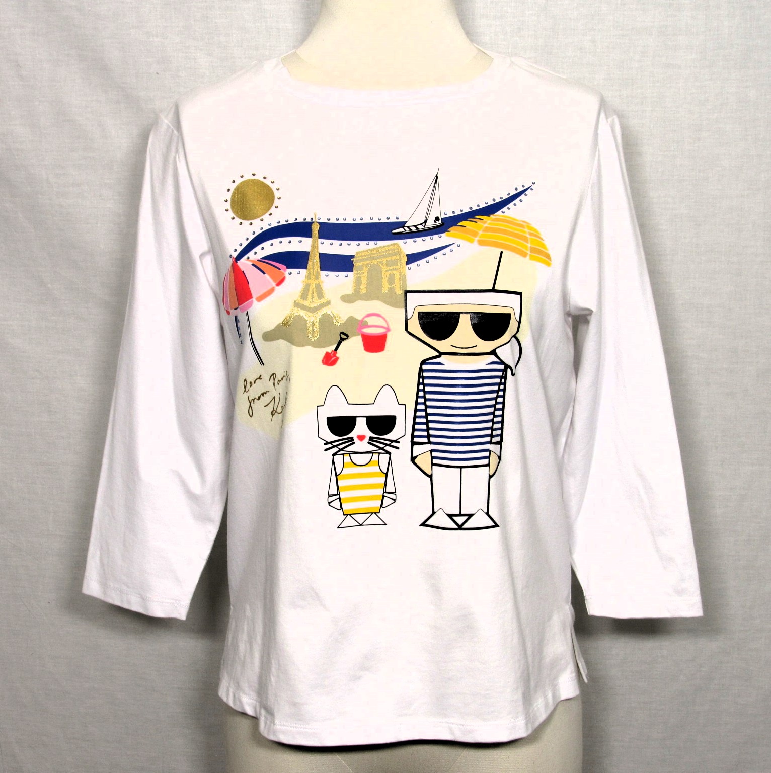 Embroidered 3/4 Sleeve French Terry Novelty Top by Vecceli Italy;